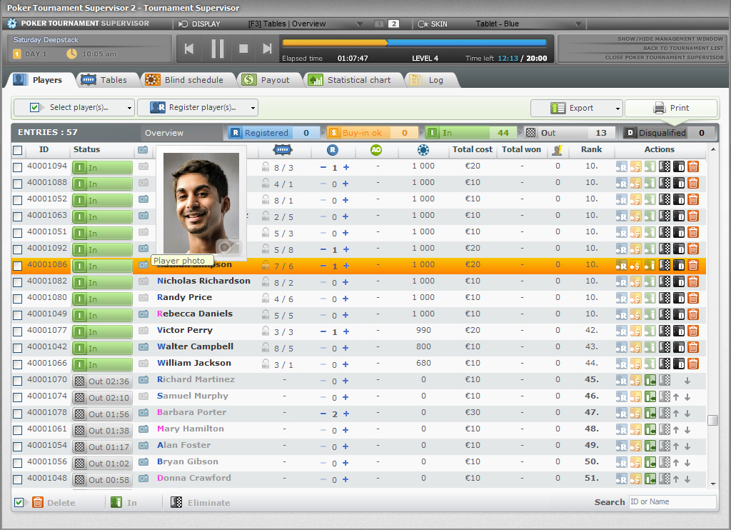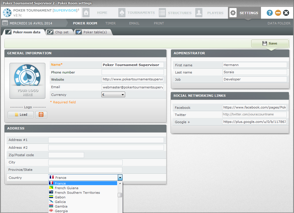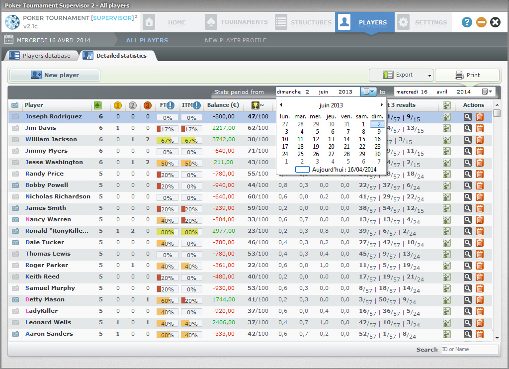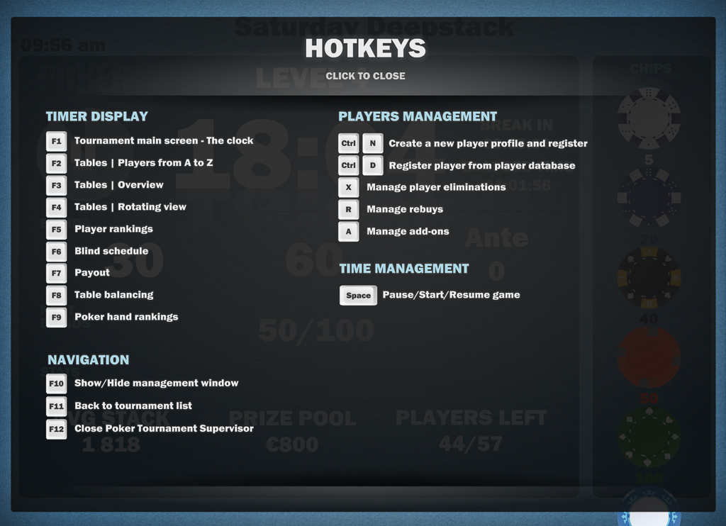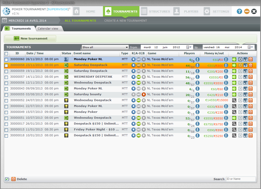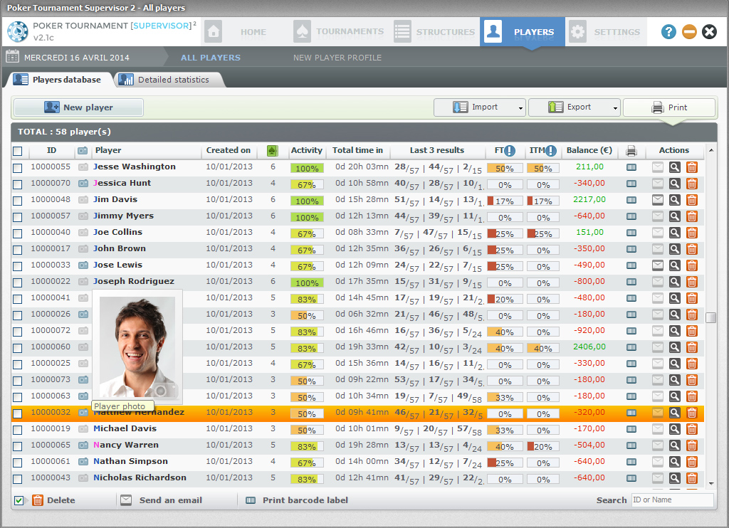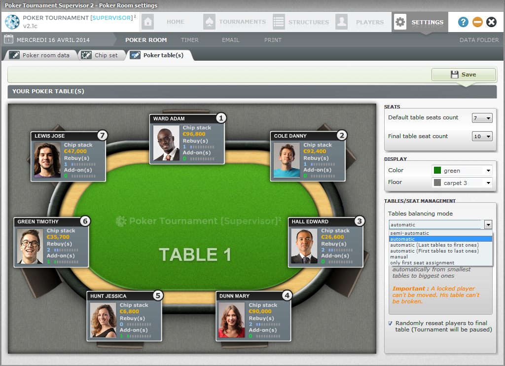 Nous vous invitons à découvrir Poker Tournament Supervisor 2 au travers d'une galerie non-éxaustive de captures d'écran du logiciel :