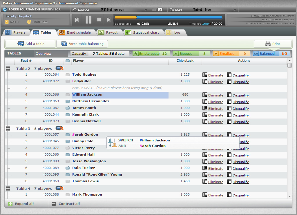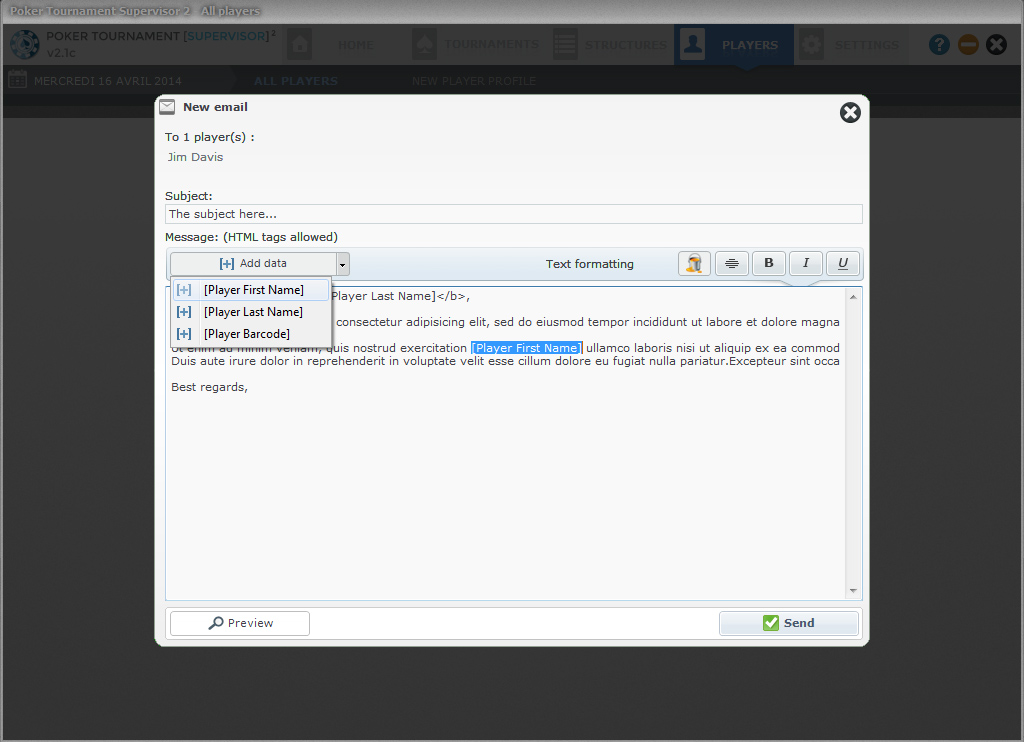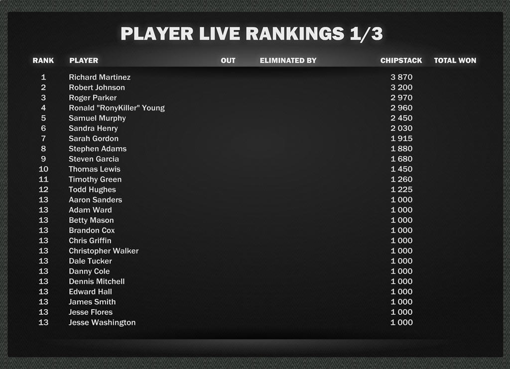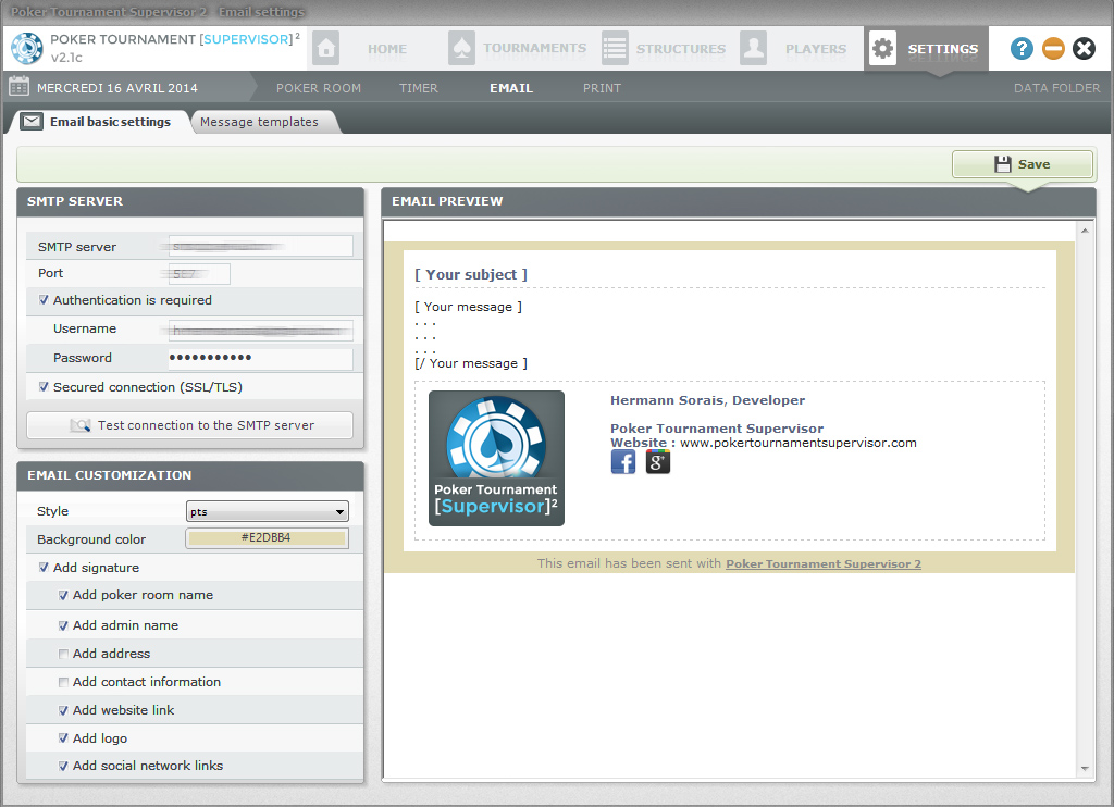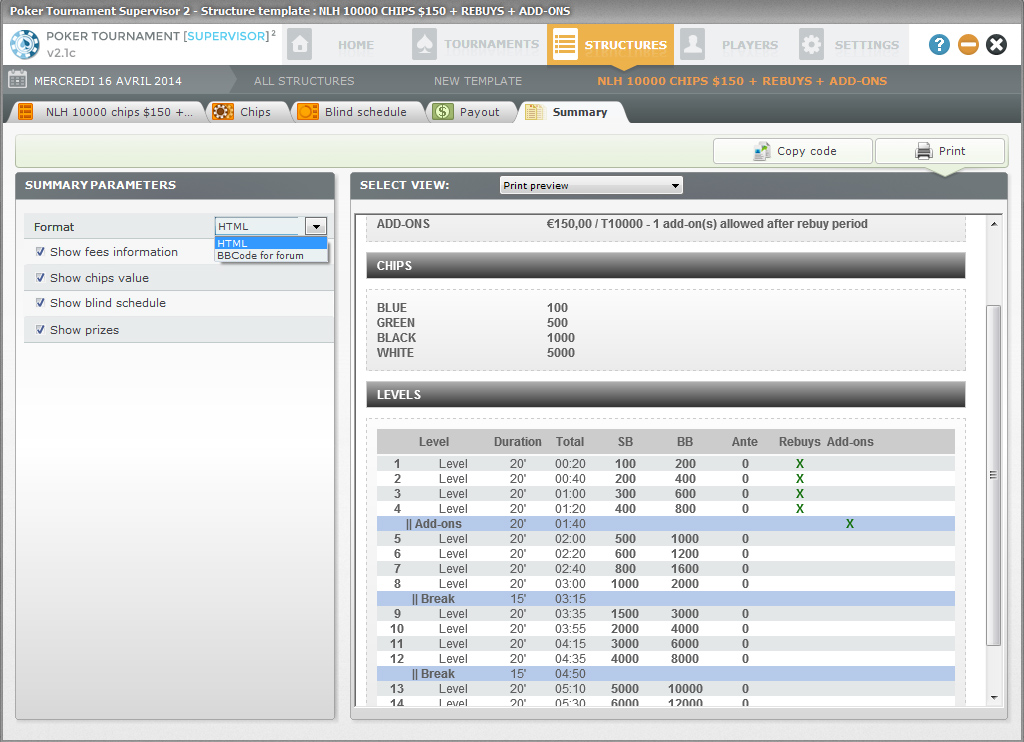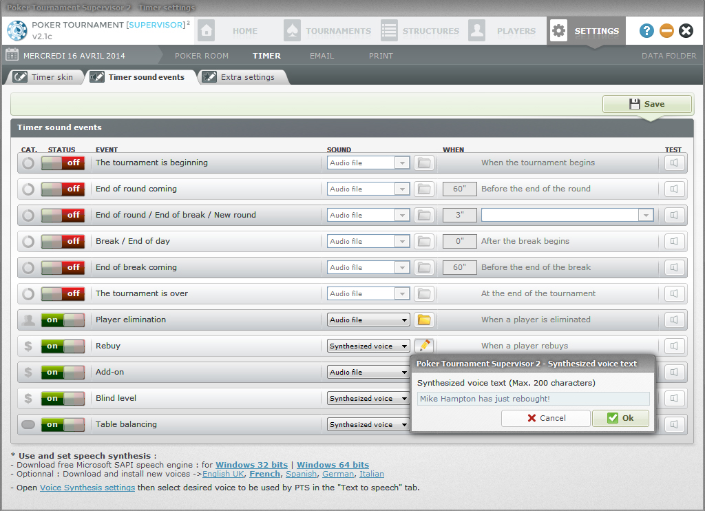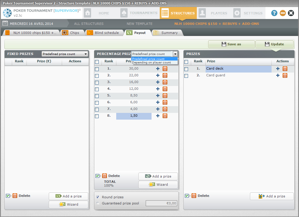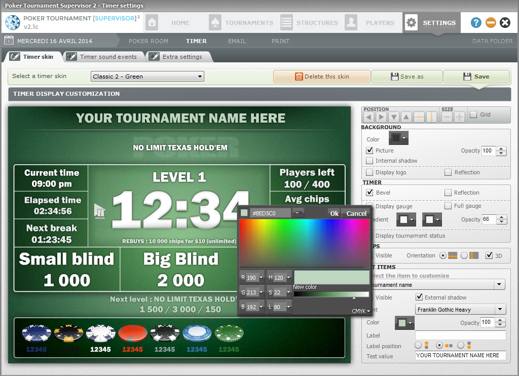 Nous vous invitons à découvrir Poker Tournament Supervisor 2 au travers d'une galerie non-éxaustive de captures d'écran du logiciel :